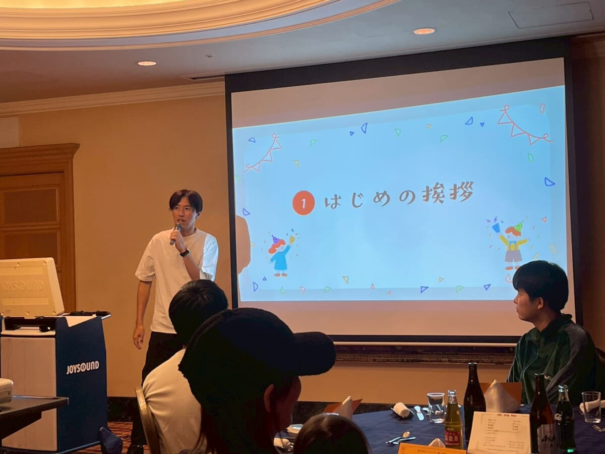 夜ご飯は初島の宴会場でコース料理を味わいました。落ち着いた雰囲気の会場に案内されると、島ならではの食材を使った華やかな料理が次々と並び、思わず笑みがこぼれます。前菜からデザートまで丁寧に仕上げられた一品一品を楽しみながら、普段よりゆっくりと会話を交わせたことで、仕事仲間との距離もぐっと縮まりました。穏やかな時間が流れ、旅行の1日目を締めくくる素敵な夕食になりました。