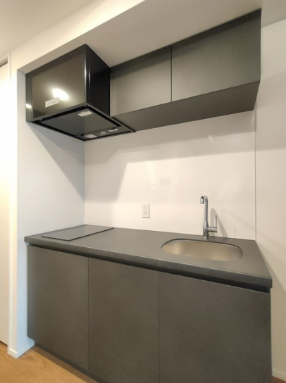 2口タイプで、同時に複数の調理が可能なので時短にもなり、自炊派にも対応できるスペックです。キッチン自体もシステムキッチン仕様で、シンク・収納・作業スペースがバランスよく設計されており、料理しやすい環境が整っています。
