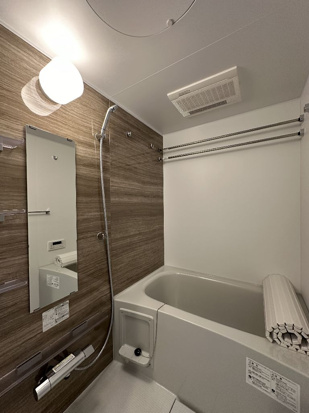 バスルームは、追い焚き機能が設置してあるため、いつでも暖かいお風呂につかることが可能です。忙しい方にはありがたい設備です。浴室乾燥機も備え付けてあるため、雨が続く日や湿気の多い季節、外に洗濯物を干したくない方にも大変便利な設備です。