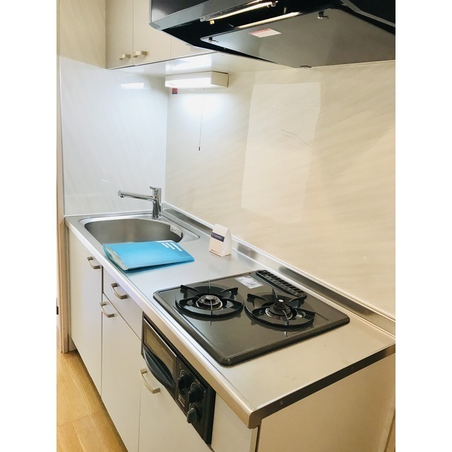 壁付けまたは対面式のスタイルになっており、空間を圧迫せず、生活動線がとてもスムーズです。グリル付きで収納力のあるシステムキッチンが採用されており、料理を日常的に楽しみたい方にとっても十分な機能が備わっています。