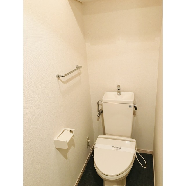 トイレは、温水洗浄便座の機能がついているため、いつでも快適に、清潔に保つことができます。トイレ上に収納もあるため、収納には困りません。
