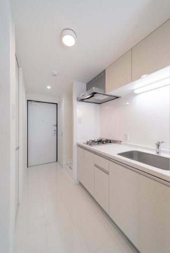 スタイリッシュなデザインと高い機能性が特徴です。2口のガスコンロを備え、調理スペースが広く、毎日の料理が快適に行えます。収納力にも優れており、引き出し式のキャビネットや吊戸棚などでキッチン周りがすっきりと片付きます。