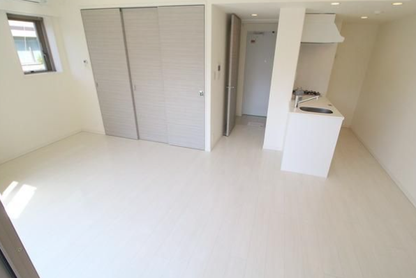 シンプルながらも洗練されたデザインで、快適な一人暮らしを実現します。フローリングの床が清潔感を演出し、白を基調とした内装が空間を広く見せる効果があります。クローゼットも備え付けられており、収納力も十分。大きめの窓からは自然光が差し込み、日中は明るく心地よい空間が広がります。