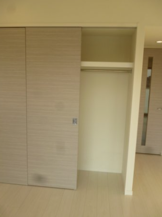 使い勝手の良いクローゼットが設置されており、衣類や小物をすっきりと収納できます。ハンガーパイプ付きで、スーツやコートなどもしっかり掛けられるため、シワになりにくく整理整頓がしやすいのが特徴です。