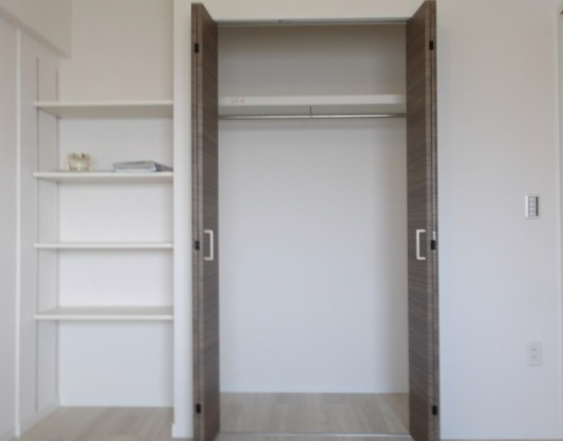 収納は、洋室に設置してあるためコーディネートもしやすい位置にあります。クローゼットの中は上段とハンガーラックの付いた下段に分かれており、お洋服が多い方でもすっきりと収納可能です。全体が見渡せて取り出しやすい仕様になっています。