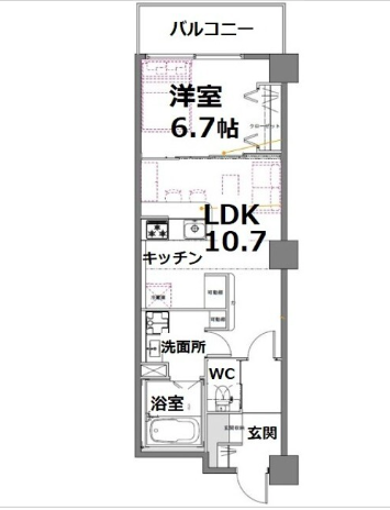 LDKは、10.7畳と広々とした空間になっています。西向きなので、西日が差し、静かで落ち着いた住環境の中、自分だけのプライベート空間としてリラックスできる理想的な洋室です。