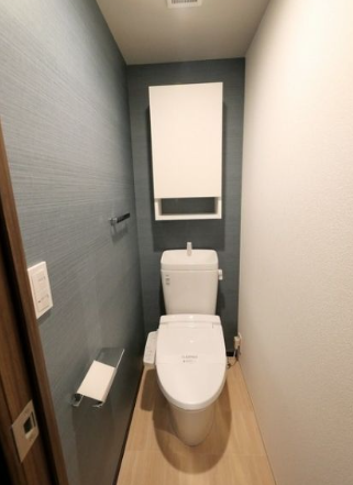 トイレは、温水洗浄便座の機能がついているため、いつでも快適に、清潔に保つことができます。タンクレスのスタイリッシュなトイレです。