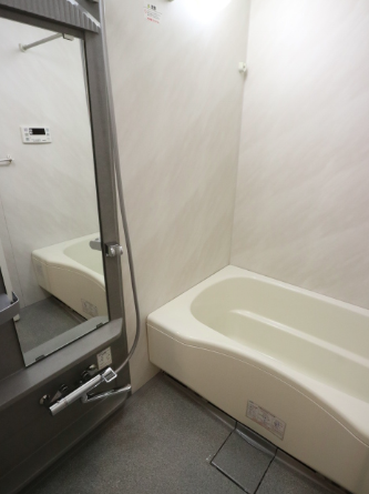 バス・トイレ別仕様で、浴室乾燥機と温水洗浄便座を標準装備しています。清潔感あるシンプルなユニットになっています。