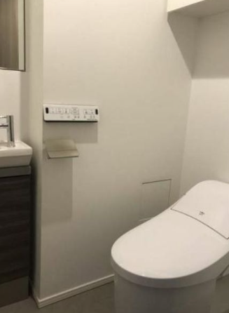 トイレは、温水洗浄便座の機能がついているため、いつでも快適に、清潔に保つことができます。タンクレスなのでスタイリッシュです。温水洗浄便座が標準装備されています。これにより、寒い季節でも快適に使用できるほか、清潔感を保つことができます。トイレ上やサイドに収納もあります。