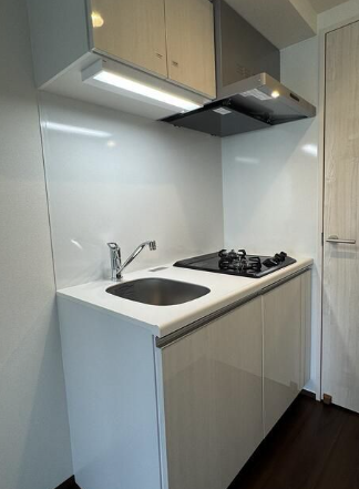 2口タイプで、同時に複数の調理が可能なので時短にもなり、自炊派にも対応できるスペックです。キッチン自体もシステムキッチン仕様で、シンク・収納・作業スペースがバランスよく設計されており、料理しやすい環境が整っています。