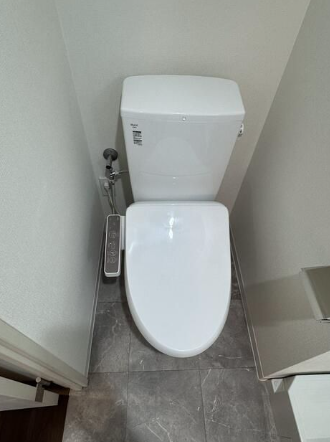 トイレは、温水洗浄便座の機能がついているため、いつでも快適に、清潔に保つことができます。温水洗浄便座が標準装備されています。これにより、寒い季節でも快適に使用できるほか、清潔感を保つことができます。トイレ上やサイドに収納もあります。
