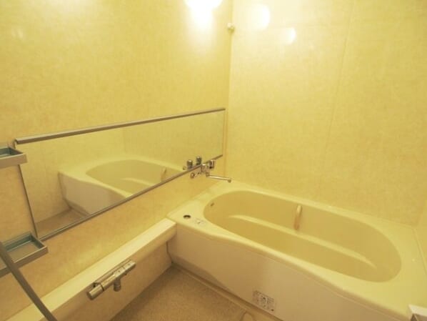 壁面には落ち着いたトーンのパネルが使われていて、白やグレー、ウッド調の色合いが基調になっています。そのため、視覚的にも圧迫感が少なく、ホテルライクな印象を受けます。バスタブはゆったりとしたサイズで、足を伸ばして浸かれる深さと広さが確保されており、一日の疲れをしっかりと癒すことができます。