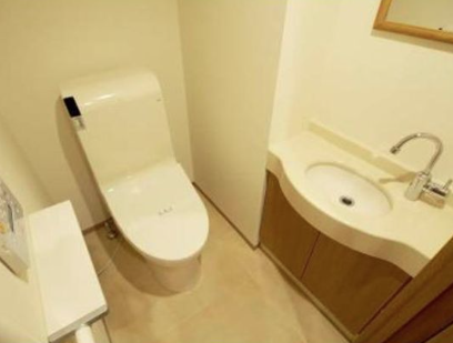 トイレは、温水洗浄便座の機能がついているため、いつでも快適に、清潔に保つことができます。トイレ上に収納もあるため、収納には困りません。