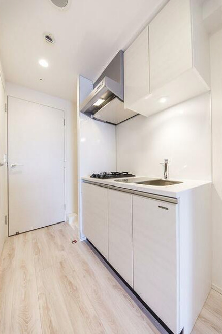 2口タイプで、同時に複数の調理が可能なので時短にもなり、自炊派にも対応できるスペックです。キッチン自体もシステムキッチン仕様で、シンク・収納・作業スペースがバランスよく設計されており、料理しやすい環境が整っています。