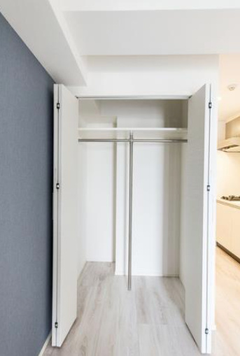 収納は、洋室に設置してあるためコーディネートもしやすい位置にあります。クローゼットの中は上段とハンガーラックの付いた下段に分かれており、お洋服が多い方でもすっきりと収納可能です。全体が見渡せて取り出しやすい仕様になっています。