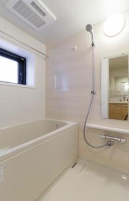 清潔感あふれるデザインで、日々の疲れを癒す快適な空間となっています。ゆったりとした浴槽は足を伸ばして入浴できるサイズ感で、リラックスタイムに最適。壁や床には落ち着いた色合いの素材を使用し、上質な雰囲気を演出しています。浴室乾燥機も備えており、雨の日や花粉の季節でも洗濯物を快適に乾かすことが可能です。機能性とデザイン性を兼ね備えた、毎日使うのが楽しみになるバスルームです。