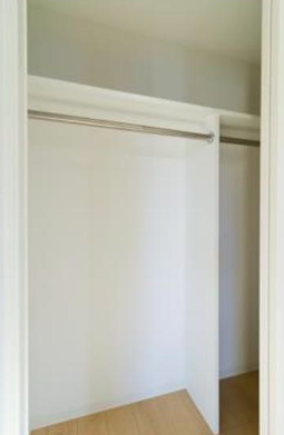 奥行きと幅がしっかりと確保されており、衣類はもちろん、季節家電やスーツケースなどのかさばる荷物もすっきり収納できます。ハンガーパイプ付きで洋服の管理がしやすく、棚板もあるため小物やバッグの整理にも便利です。居室空間を広く使えるだけでなく、生活感を隠してすっきりとした室内を保てる、実用性の高い収納スペースです。