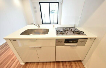 効率的でスタイリッシュな調理環境を提供します。3口ガスコンロ付きで、シンプルかつ実用的。キッチン下部には収納キャビネット、上部には吊り棚が配置され、調理器具や食器をすっきり整理できます。清潔感あるホワイト系の鏡面パネルは汚れが拭き取りやすく、日常メンテナンスも簡単。コンパクトなユニットながら、調理スペースは十分で、一人暮らしにはちょうどよい設計です。ガスコンロ、収納設備、清掃性に優れた美しさがそろう、快適なひとり暮らし向けキッチンです。