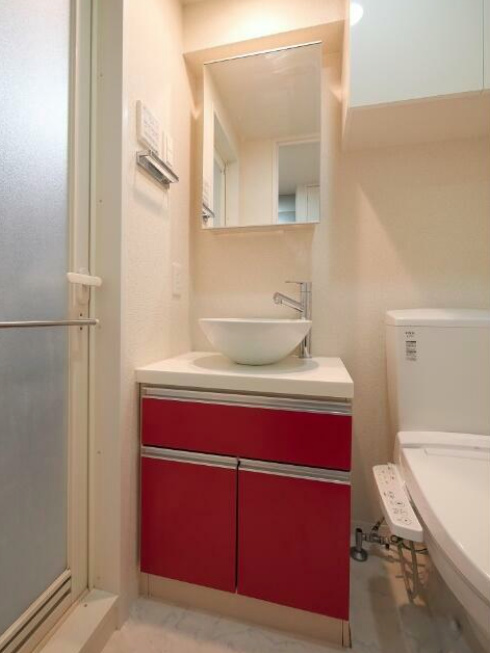 使い勝手の良い独立洗面台が設けられており、忙しい朝の身支度にも便利です。洗面台は清潔感のあるホワイトを基調とし、大きなミラーと収納スペースが付属。歯ブラシやスキンケア用品などを整理しやすく、洗面まわりをスッキリ保てます。